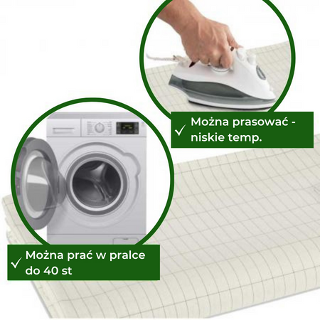 - W razie potrzeby może być prasowane w niskiej temperaturze np. ustawione na „syntetyki”.
